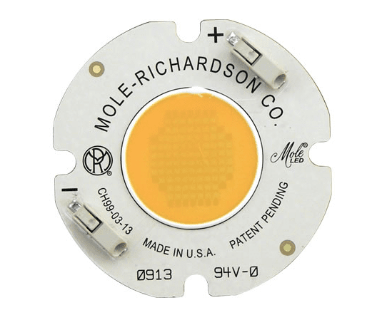 Introducing the MoleLED Fresnels. A design familiar to generations of lighting professionals is now loaded with state of the art electronics and the latest LED chip on-board technology. These revolutionary fixtures use a proprietary Quantum Dot LED developed and produced by Mole to replicate film and television 3200K Tungsten or 5600K Daylight exactly.