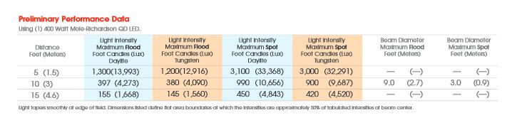 - Light Source: (1) - 400 Watt Mole-Richardson Quantum Dot LED