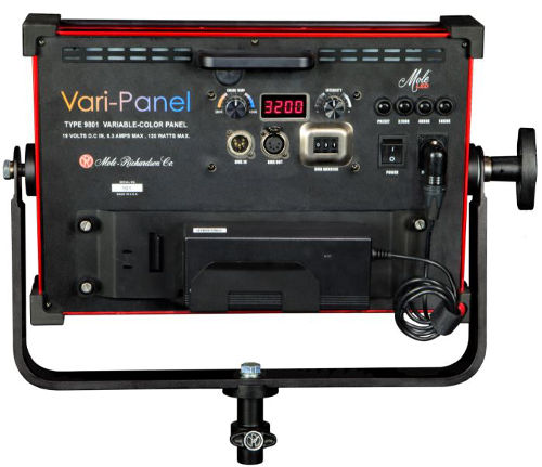 The Mole-Richardson Vari-Panel LED 150w is just the right mix of size, output and price that makes it a winner. The Vari-Panel 150w provides 186 foot candles at 5ft in daylight mode and 164 foot candles in tungsten mode. The front face aperture measures 15" x 9.5" providing plenty of soft, wrapping light, great for interviews. The wide beam spread also helps for lighting larger areas on set or location. Color temperature is fully adjustable from 2800K tungsten (95 CRI) to 6500K daylight (97 CRI). Features onboard flicker-free dimming from 0 - 100%, as well as 4 presets 3200K, 4100K, 5600K and Custom. Need the control of a lighting console? The Vari-Panel has built in 5 Pin DMX input and output connectors. Optional battery plates are available for V-mount and G-mount batteries.
