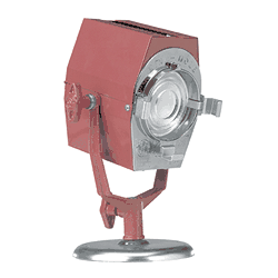 A small, rugged Solarspot that can be focused from spot-to-flood with an even field. Used in the Motion Picture and Television Studios and Still Photography as a key-light, back-light or kicker. Its small size makes the Mini-Mole adaptable to mounting on a camera as a camera light.