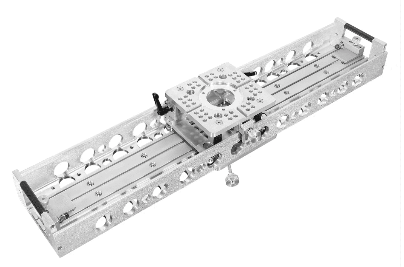 This 4' slider is engineered for demanding productions where stability, precision, and repeatability matter. The swiveling base eliminates the need for constant re-rigging, allowing operators to quickly adjust angles and maintain alignment.