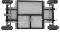 4 wheel steering doorway dolly. Wood platform. 28 1/4" wheelbase x 51" platform. Comes with (1) push bar, (1) pull bar, (2) side-boards.
