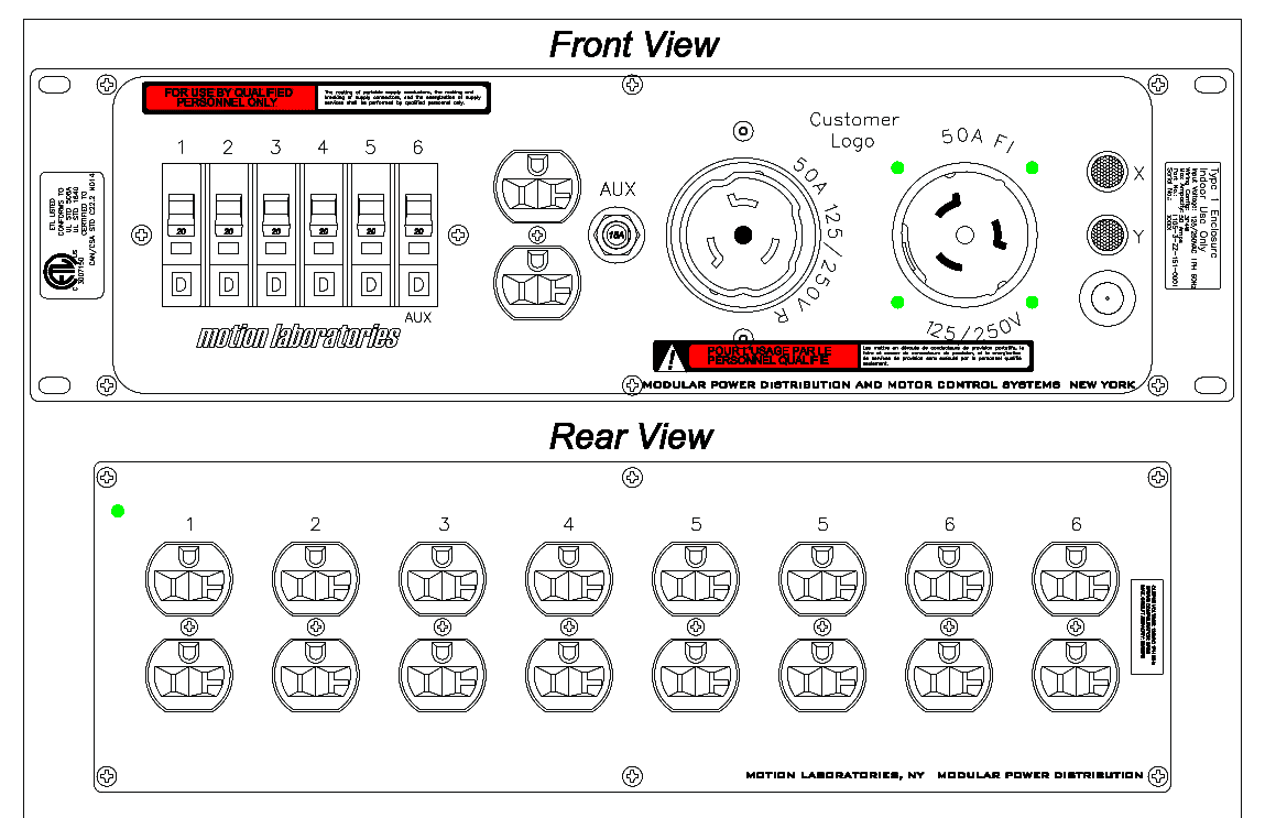 Rac Pac 3RU CS6375/CS6369 (50A 125/250V) In/Thru, AUX Duplex- Front, 8x Ed Duplex- Rear, Chassis Depth 7.0, ETL Listed.