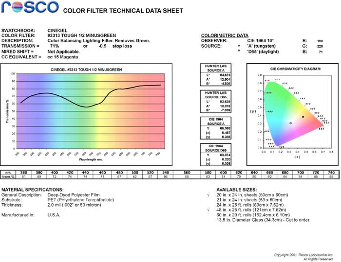 Rosco Cinegel 3313 Tough 1/2 Minus Green Gel Filter Sheet