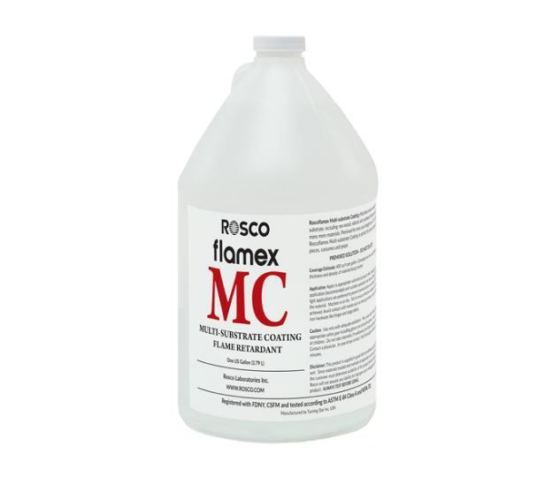 Rosco Flamex MC is premixed for ease of use. The application method and quantity depend on the material's thickness and density.