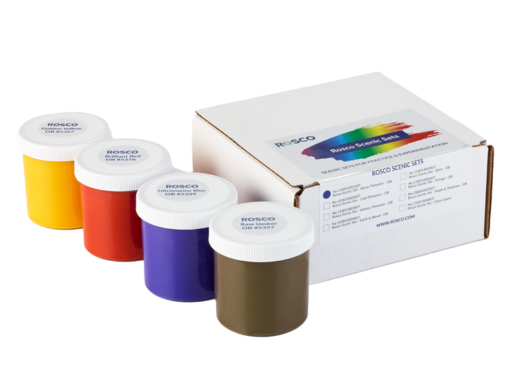 This kit of Off Broadway scenic paints is designed for painters and students to explore color theory and color mixing to create warm-toned color blends. The Warm Primaries Scenic Set includes one 6 oz. jar of each of the following Off Broadway colors: